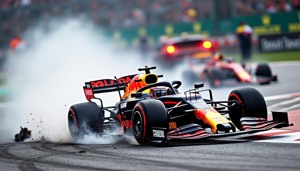 Los primeros diez minutos se desarrollaron rápidamente, y cuando quedaban apenas siete minutos y medio de la sesión, Verstappen aún no había registrado tiempo. La maniobra fallida desencadenó una bandera roja, ya que su coche impactó contra las barreras a alta velocidad, lo que lo dejó fuera de la clasificación. Este episodio significó la peor calificación para Verstappen desde 2021, cuando no pudo competir debido a sanciones previas.